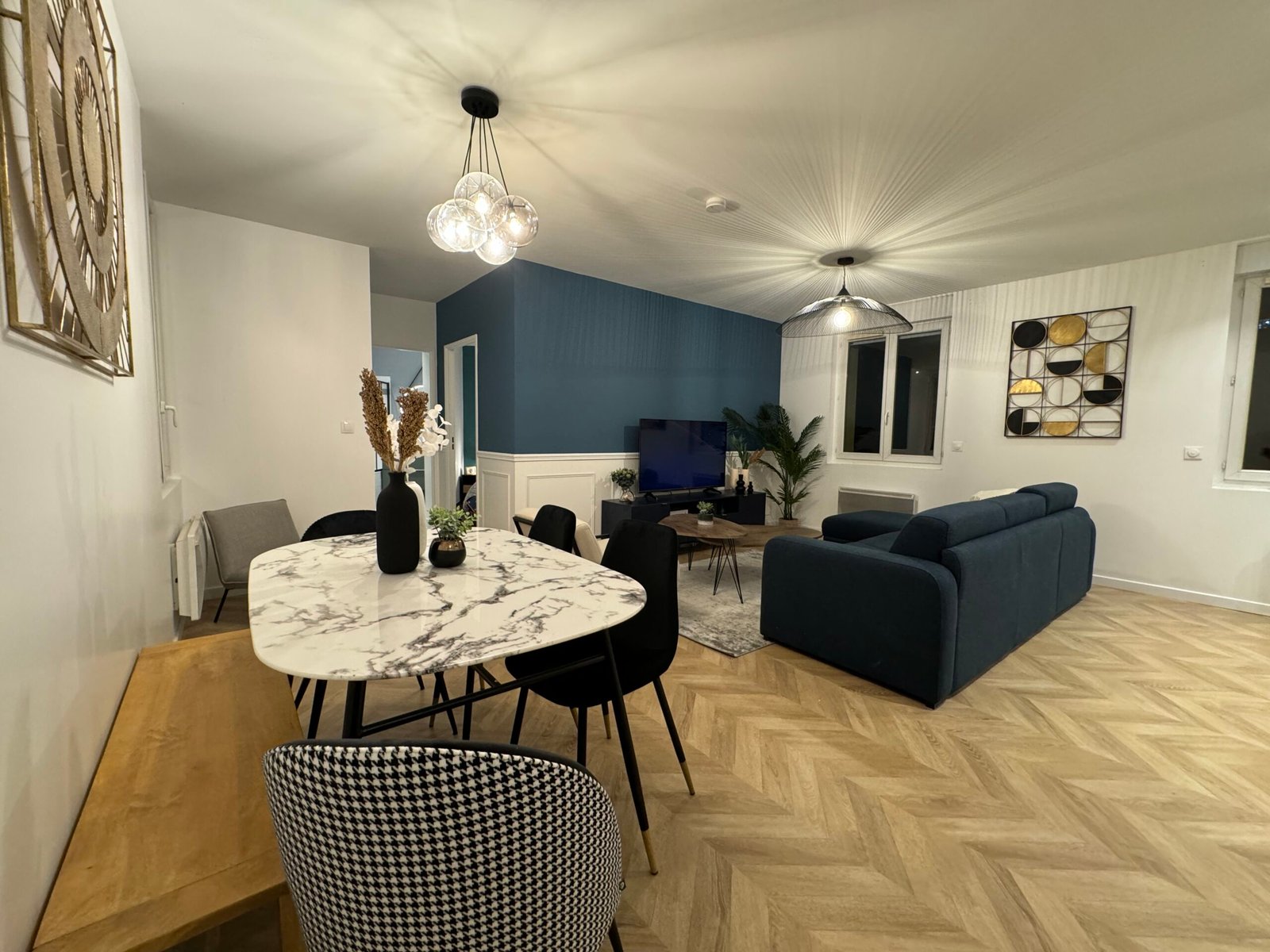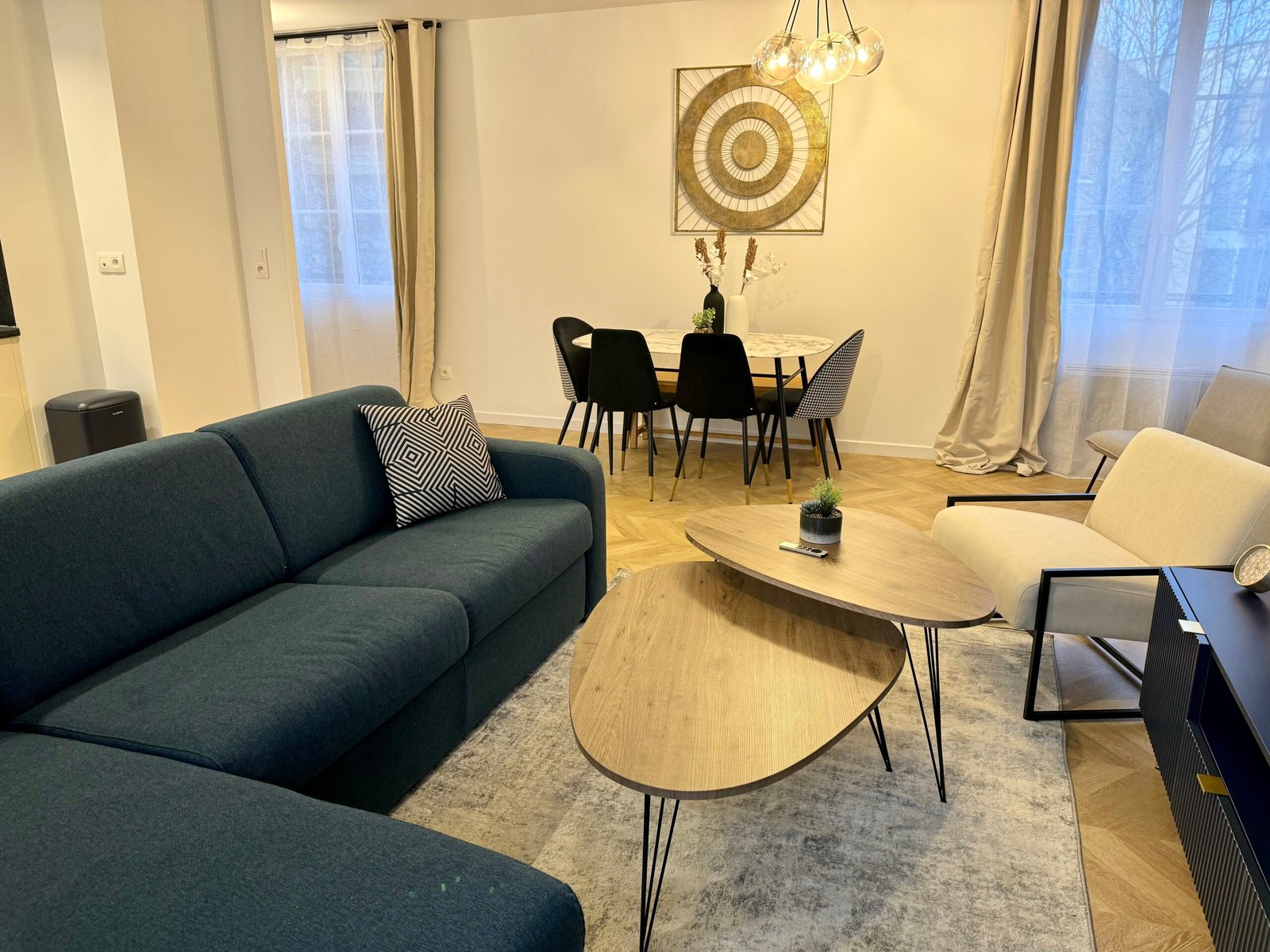Bienvenue dans une maison spacieuse et design, idéale pour des séjours en famille ou entre amis, avec un grand espace de vie lumineux et convivial.